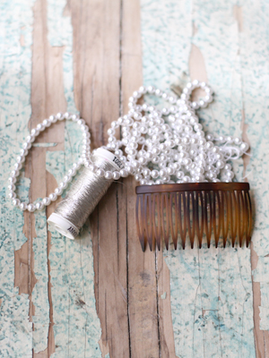 4. To cover any spots of the original comb, especially at the ends, and to make the comb more interesting, add a few pearl beads to the comb. Use strong glue, like E-6000, to attach the beads to the comb. Wait 20 minutes for the glue to dry before putting it in your hair.